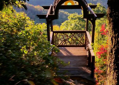 In April, 2016 my daughter’s wedding took place in the beautiful meadow of the Preserve at Rock Creek. Afterwards, I relocated the wedding arbor, which I built, from the meadow to the top of a cliff, just below the cabin.