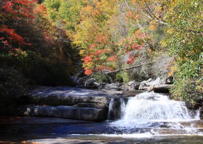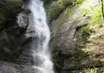 Turtleback Falls is a short walk upstream from Rainbow Falls, on the Horse Pasture River, minutes from the cabin.