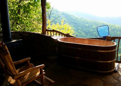 Also, on the private covered patio is a two person hot tub and a cast iron, wood burning fireplace…oh, and the view!