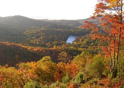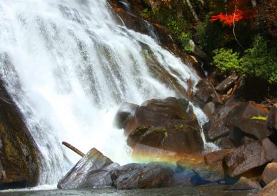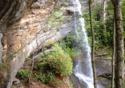 Leaving from the back parking lot in Gorges State Park, Rainbow Falls is about a 1.5 mile hike. Gorges is about three miles from the cabin.